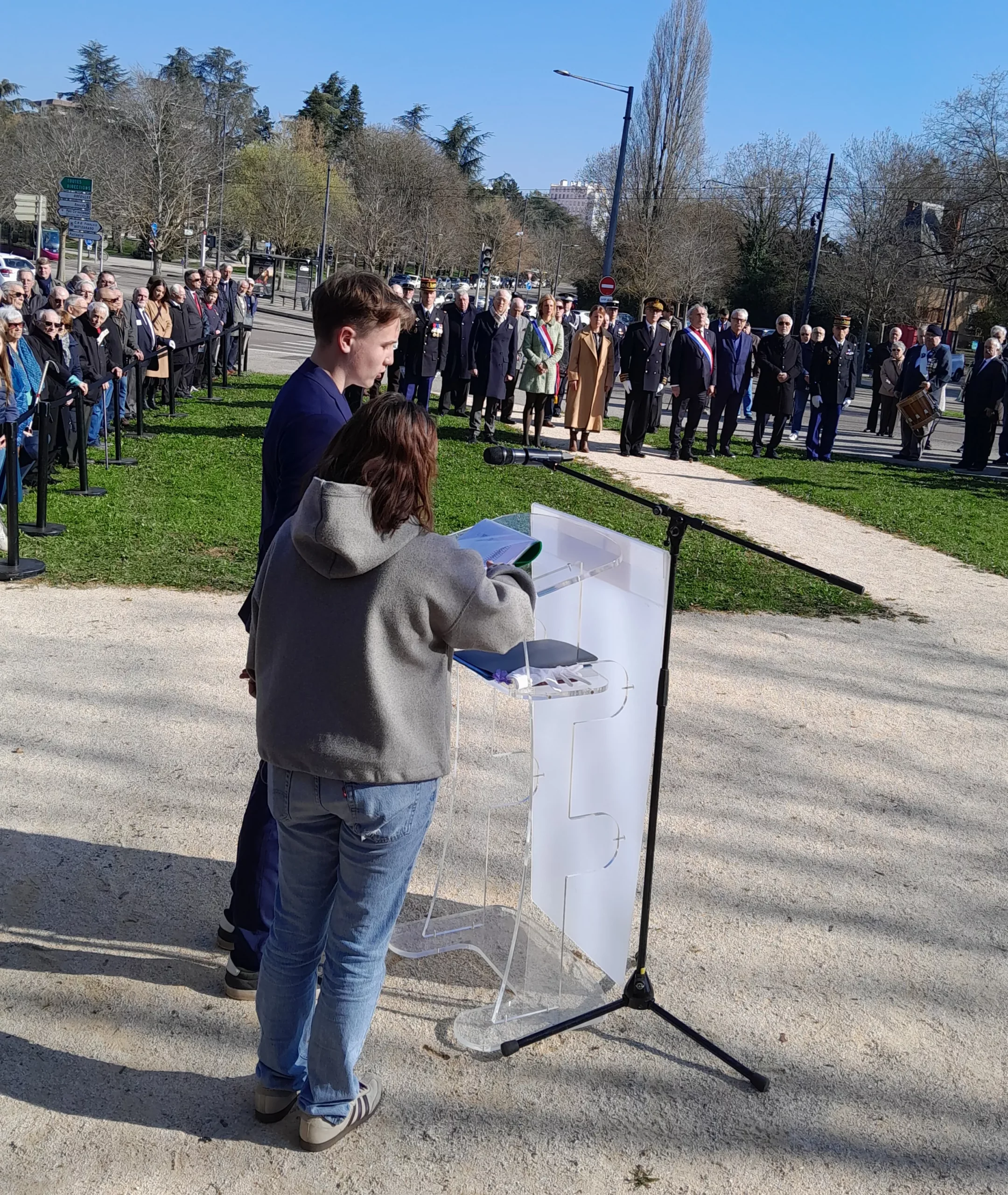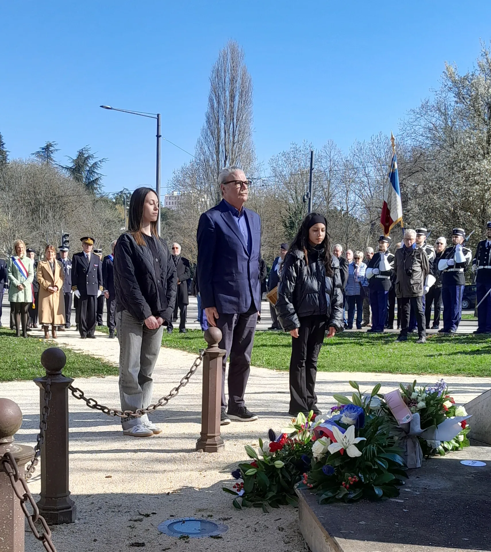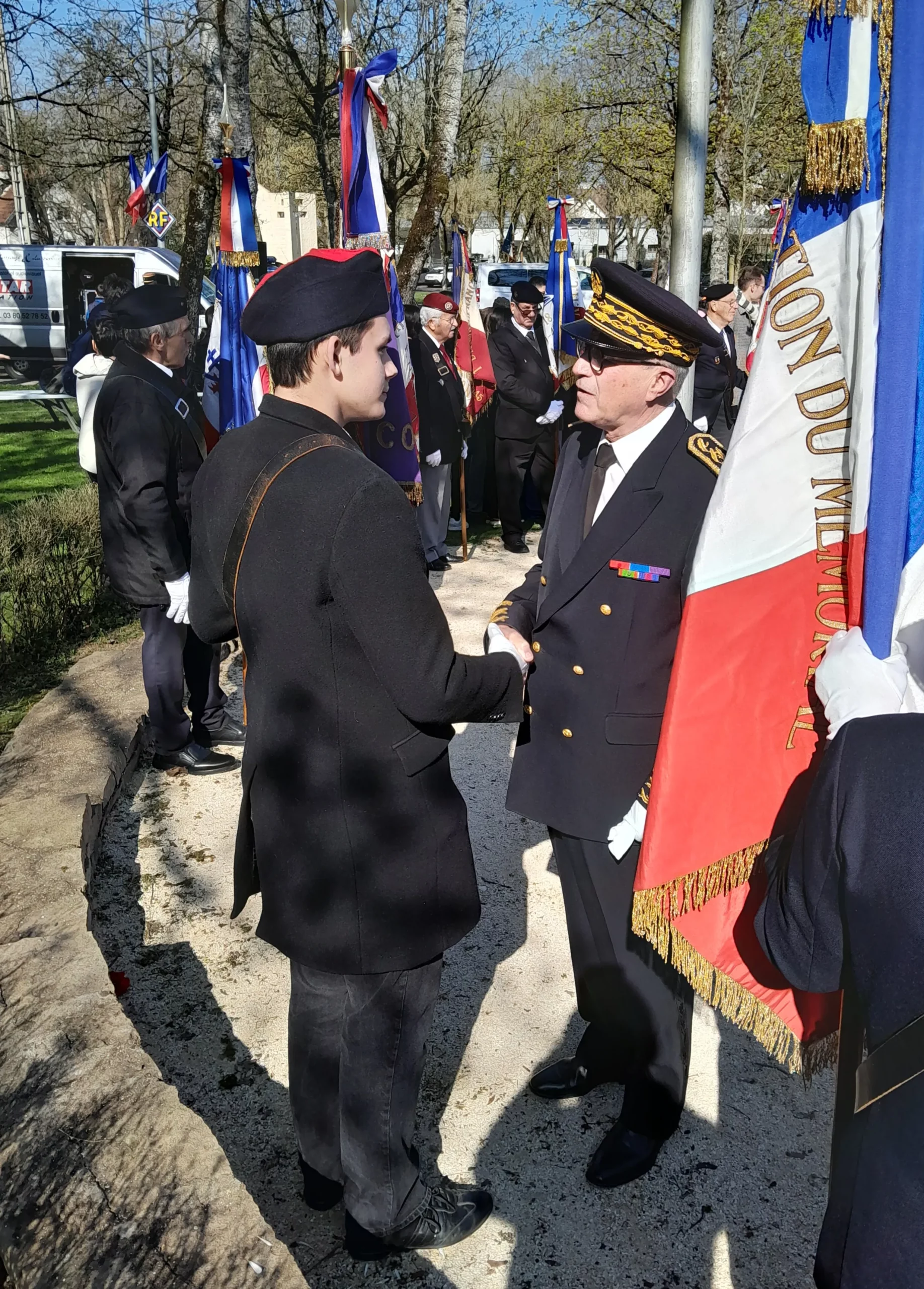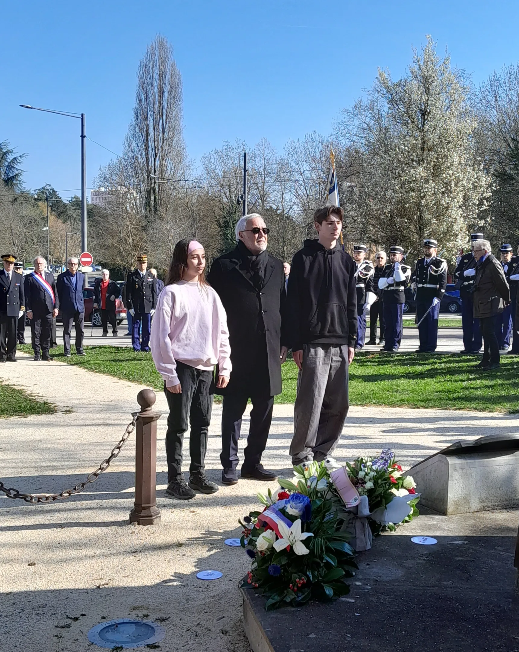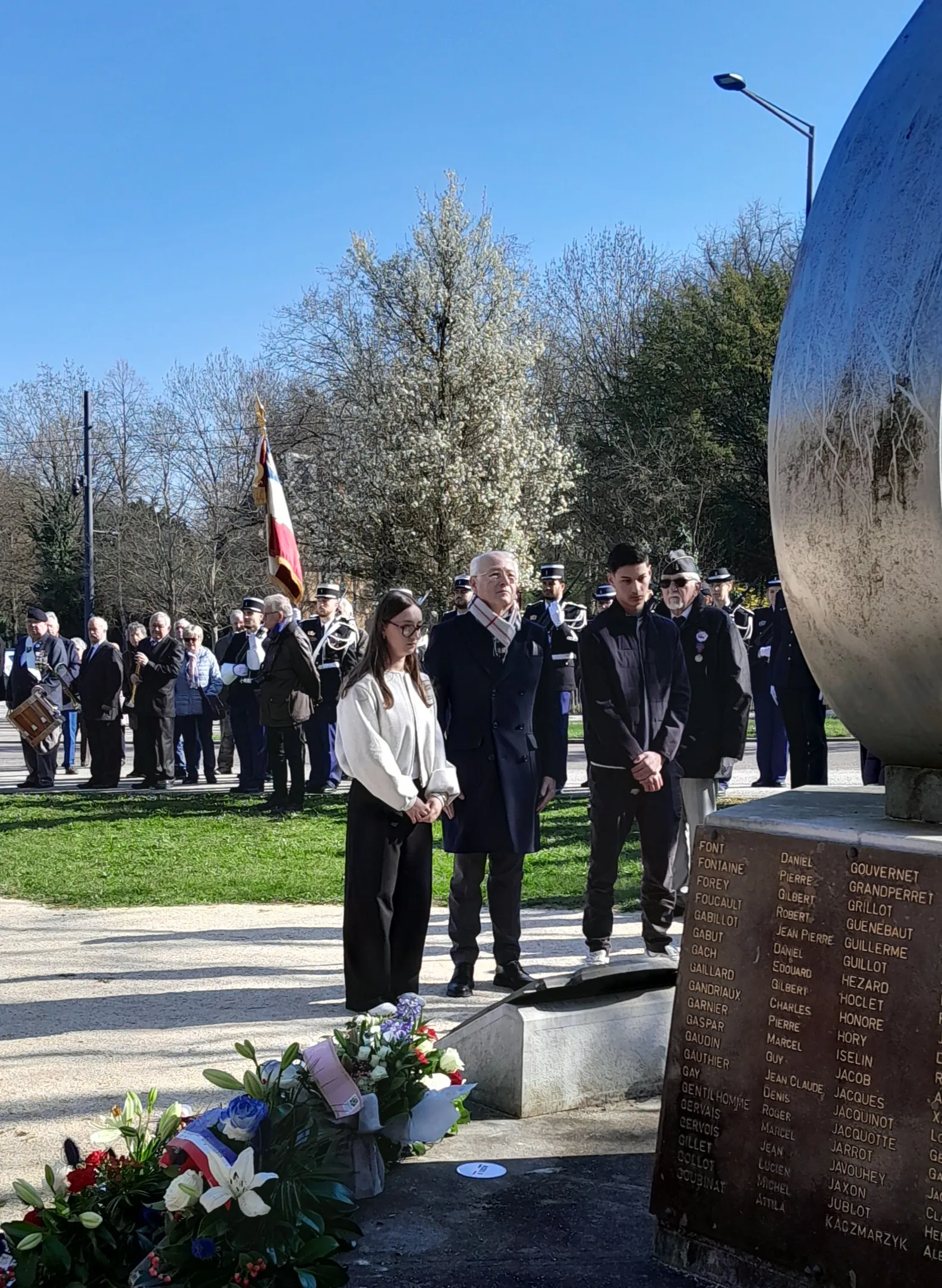 Les élèves de 1èreD ont vécu un moment fort de citoyenneté en participant à la cérémonie commémorative du cessez-le-feu en Algérie du 19 mars 1962, accompagnés de leurs enseignants M. Sroda et Mme Dolle. L’événement, marqué par une grande solennité, était présidé par M. Paul Mourier, préfet de Côte d’Or et préfet de région.