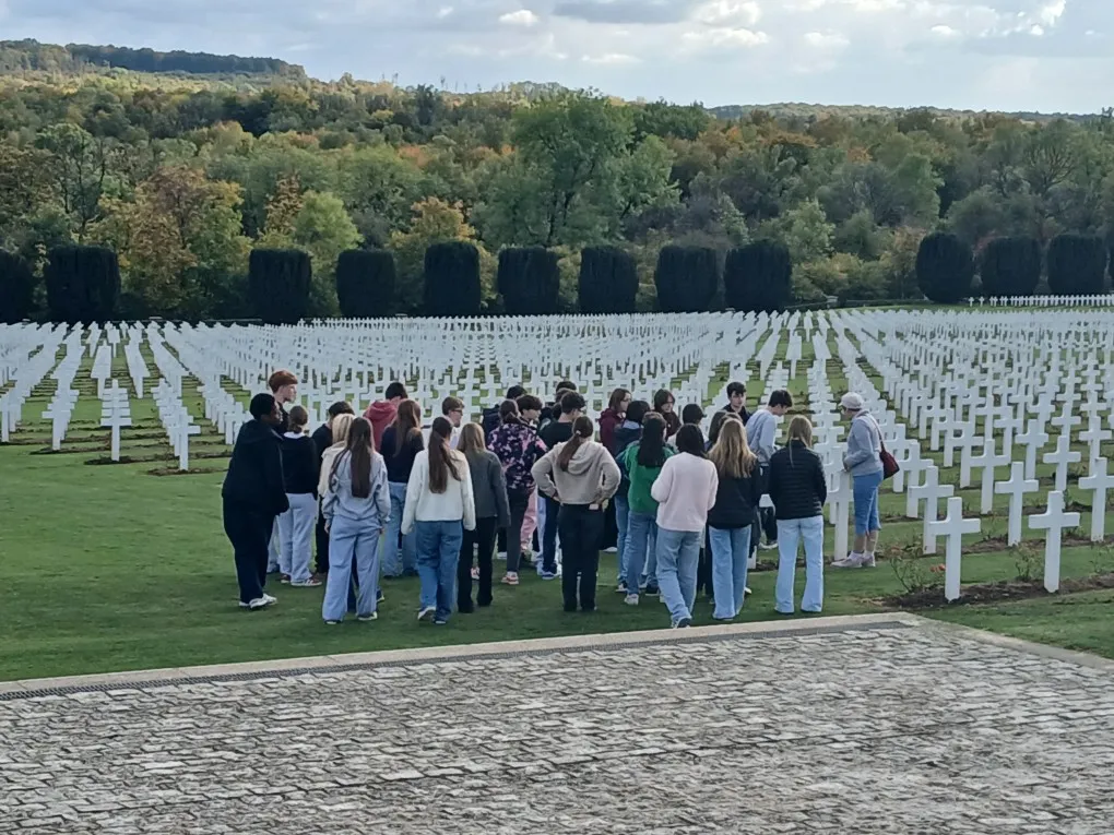Après un départ matinal à 5 h, notre groupe a fait une première halte au pied de la citadelle. Équipés de casques de réalité virtuelle, les élèves ont eu l’opportunité de suivre un groupe de soldats se reposant dans la citadelle avant de repartir au combat. La visite s’est ensuite poursuivie au Fort de Douaumont, puis à l’ossuaire de Douaumont, où reposent les ossements de plus de 130 000 soldats français et allemands.