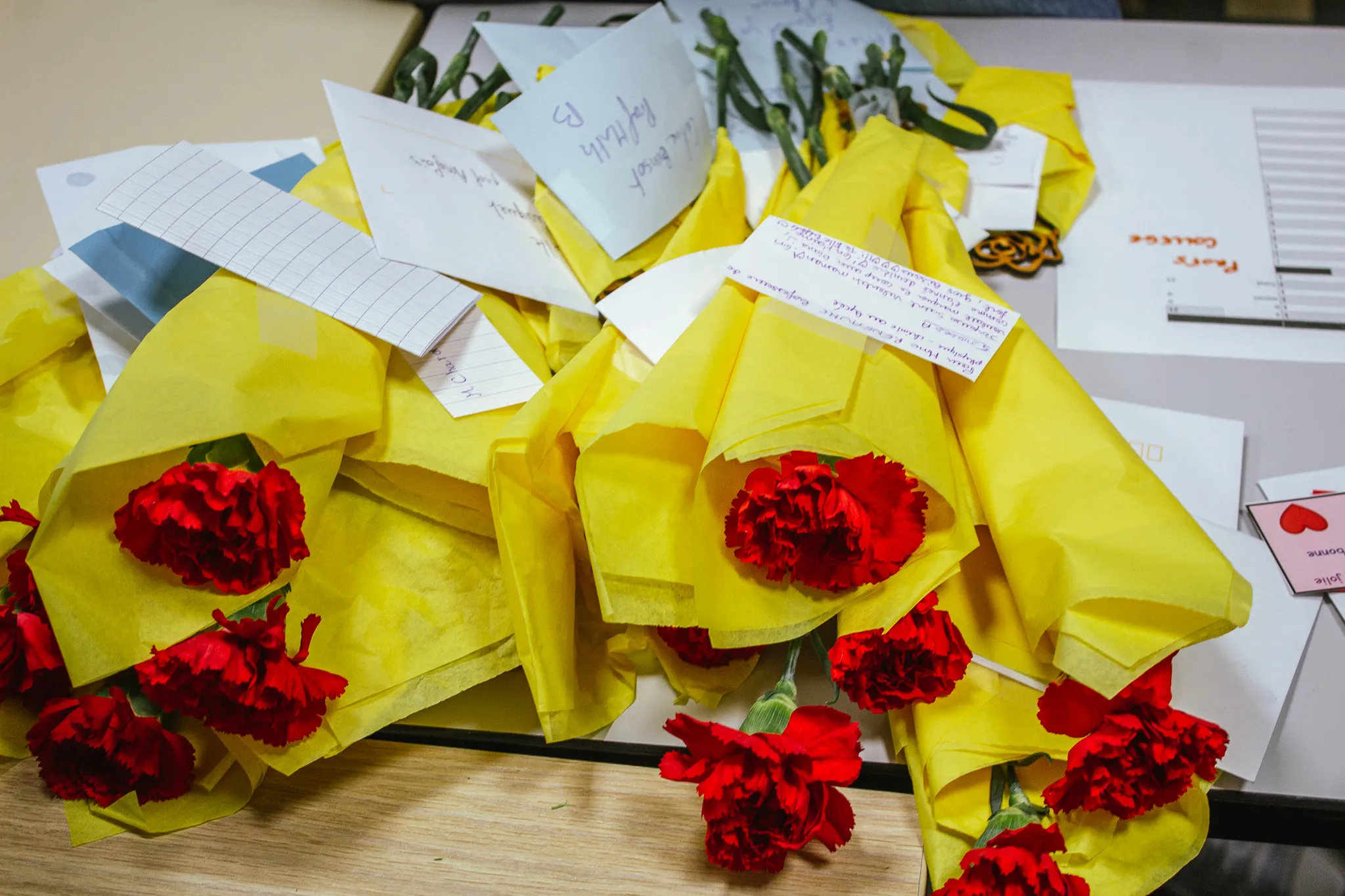 Élèves, professeurs et membres du personnel pouvaient commander une rose en bois ou un œillet rouge au prix de 2,50 €. Au retour des vacances, le 23 février, les lycéens solidaires se sont chargés de la distribution, accompagnant chaque fleur d’un petit mot personnalisé.