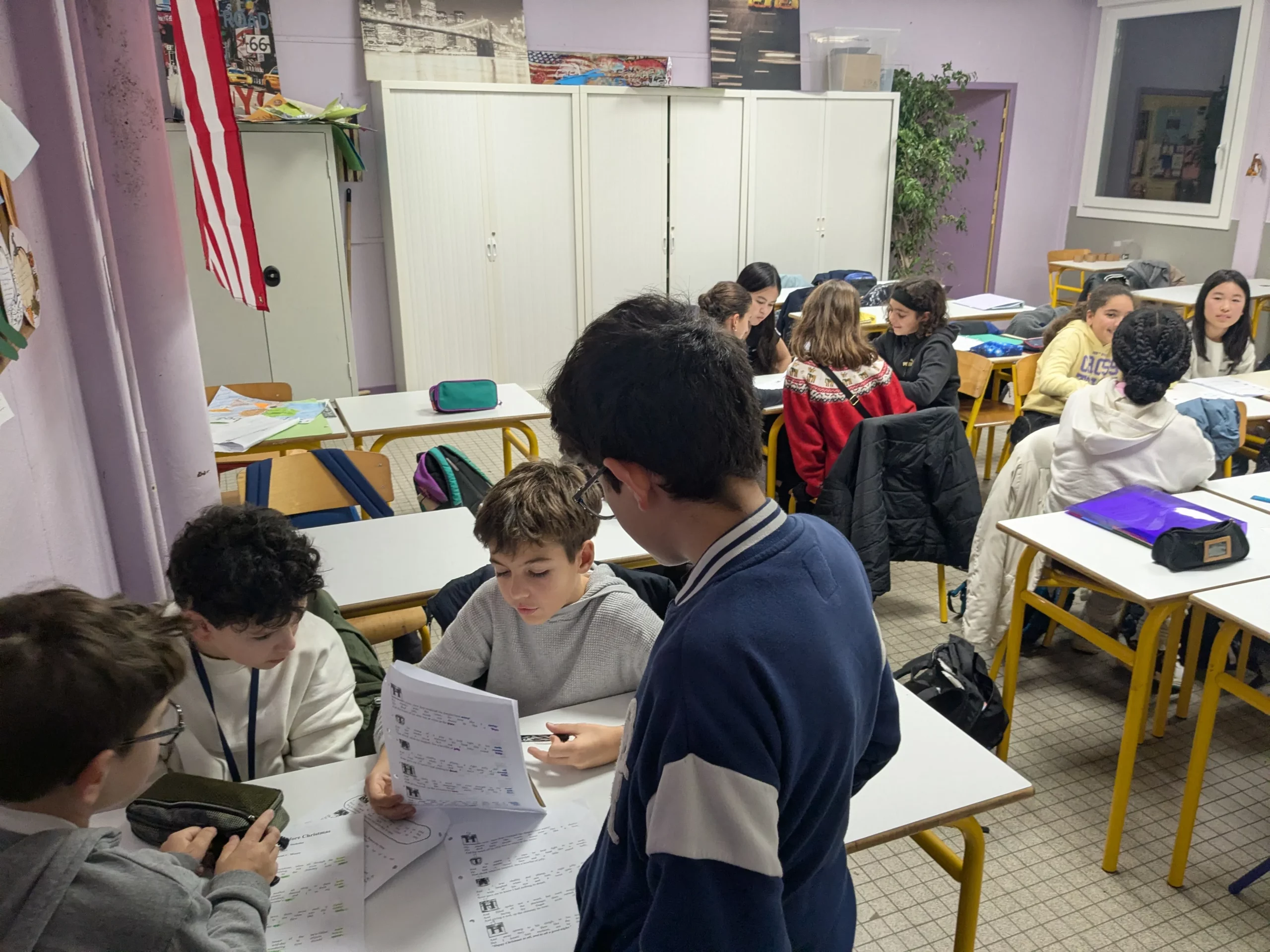 Dans la section internationale américaine, la solidarité et l’entraide sont des valeurs essentielles. Avant noël, nos élèves de 5ème ont brillamment incarné cet esprit en accompagnant leurs camarades de 6ème dans la préparation d’un exercice oral autour du célèbre poème “’Twas the Night Before Christmas”.